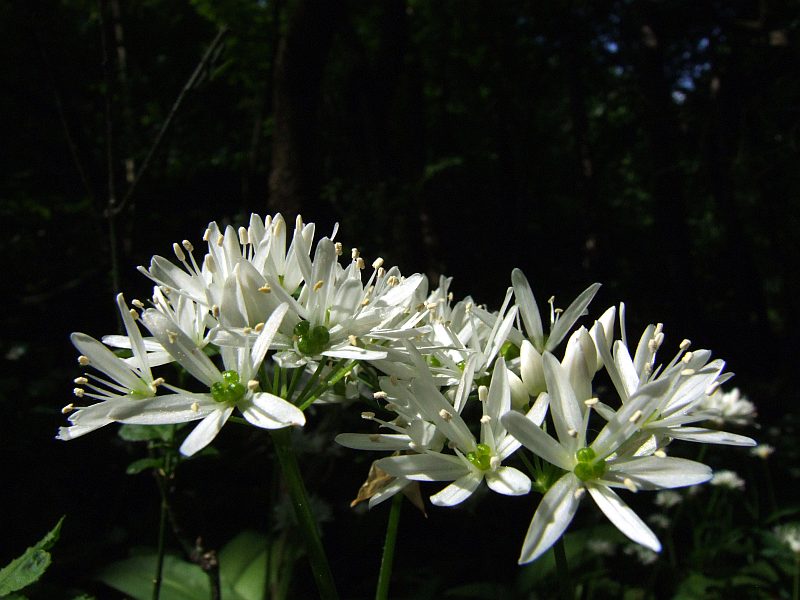 Wild garlic in full bloom inside the forest.