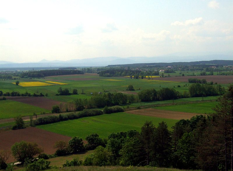 View from Blosser Berg to Wechsel, in the dust today. Oilseed rape fields in bloom already.