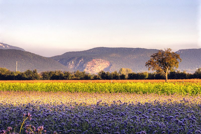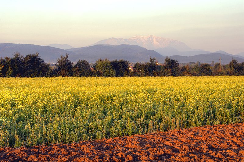 I took the car to get to the Blaetterstraße - the road between Weikersdorf and Neunkirchen, where I discovered blooming fields recently, seeded for green manure purpose. Schneeberg has lost much of its new snow, only the summit cornice, steep ravines and the big scree called "Breite Riesz" are still covered with snow.