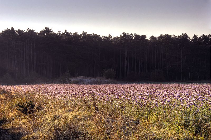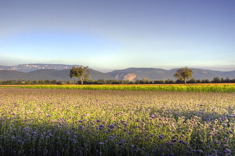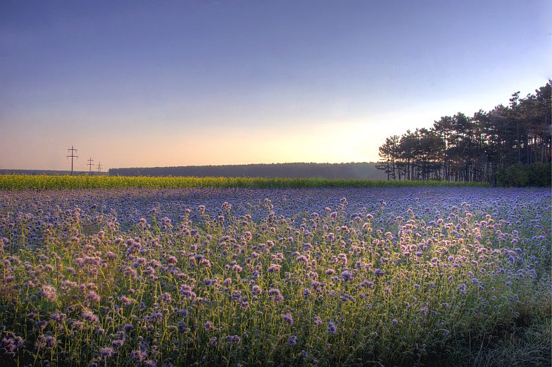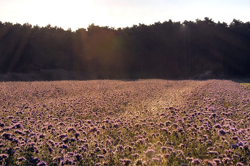 On the opposite side of the road large fields with Phacelia tanacetifolia, also planted after regular crop, for green manure purposes.