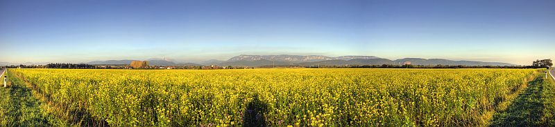 HDR - 180° - panoramic picture, as seen from the Blaetterstrasze. Schneeberg, Hohe Wand, Fischau mountains. Click here or into the picture for a larger version.