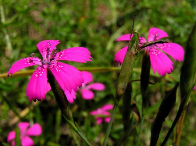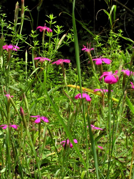 13.7.2005: Everything o.k. now, I start with new tyres. The bank is passed already, and in the valley near Muehlriegel these cloves (Dianthus carthusianorum) are flourishing near the road.
