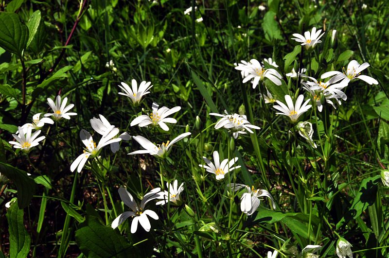 Greater Stitchwort (Stellaria holostea) in a loose mixed pine - beech - forest