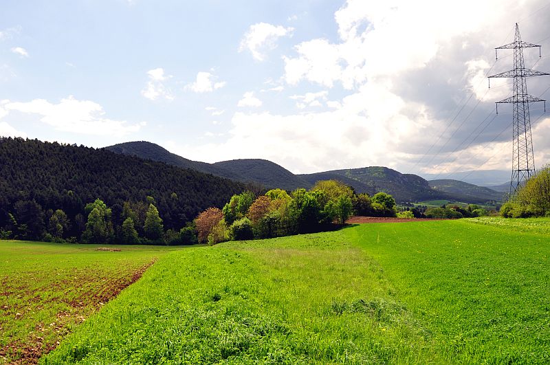 The roads through the forest are quite muddy after repeated rain last week, so I am sufficiently covered with lots of mud after a fast descentfrom the Fischau mountains. View over Neue Welt along the Fischau mountains in a southern direction.