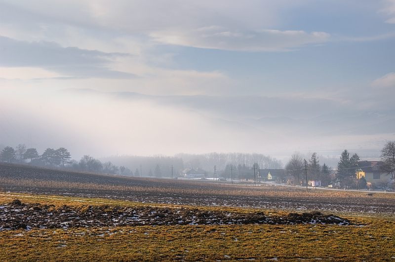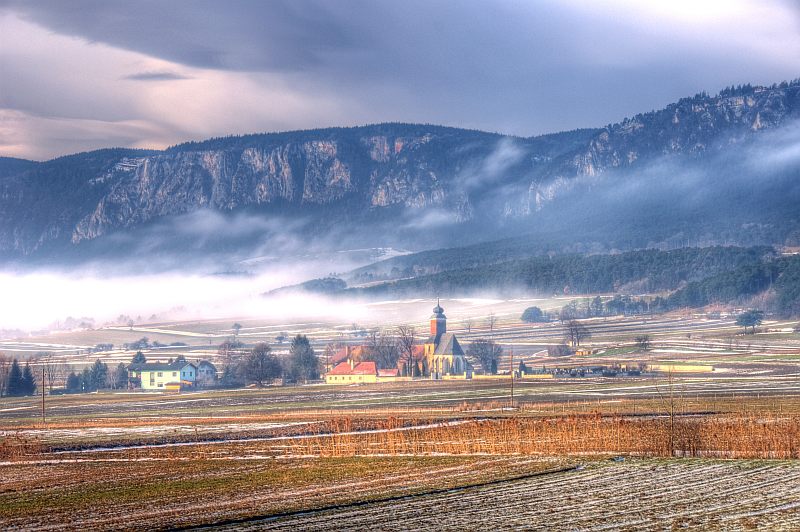 Dichter Bodennnebel liegt über Winzendorf. Unterwegs zum Postpartner in Muthmannsdorf habe ich die Kamera mit, und tatsächlich ist die Neue Welt großteils nebelfrei. Daraus ergeben sich einige nette Stimmungsbilder.