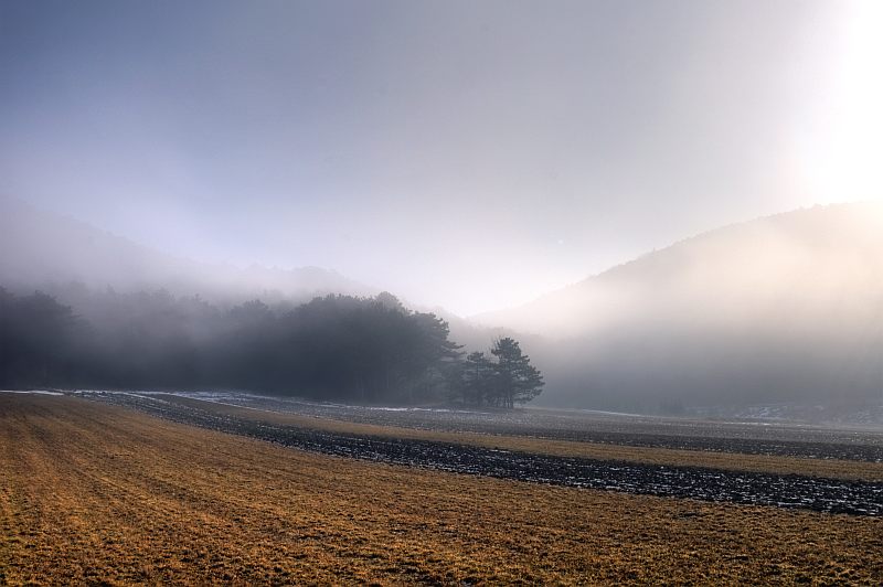 Der Nebel kriecht noch ein wenig über die Fischauer Vorberge