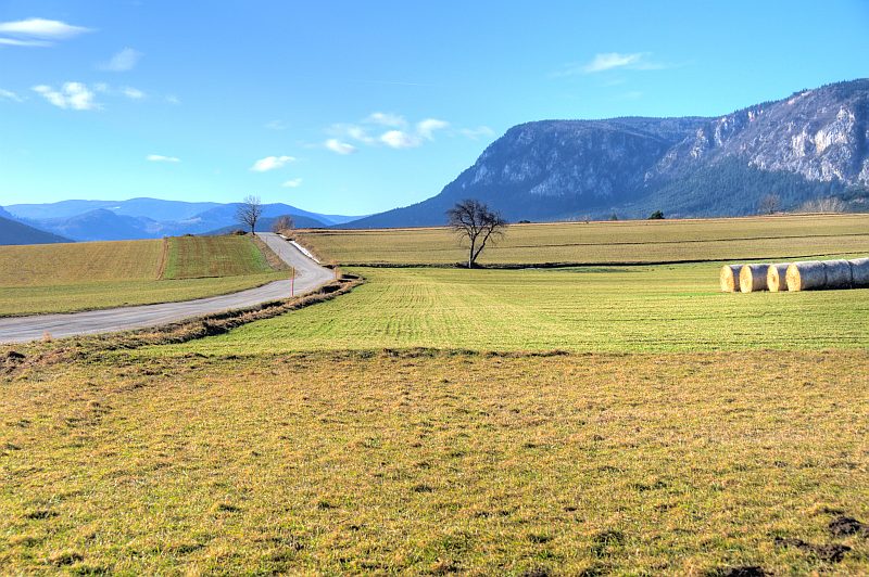 First, I walk along a narrow asphalted road heading for Gaaden. Hohe Wand in thze background.