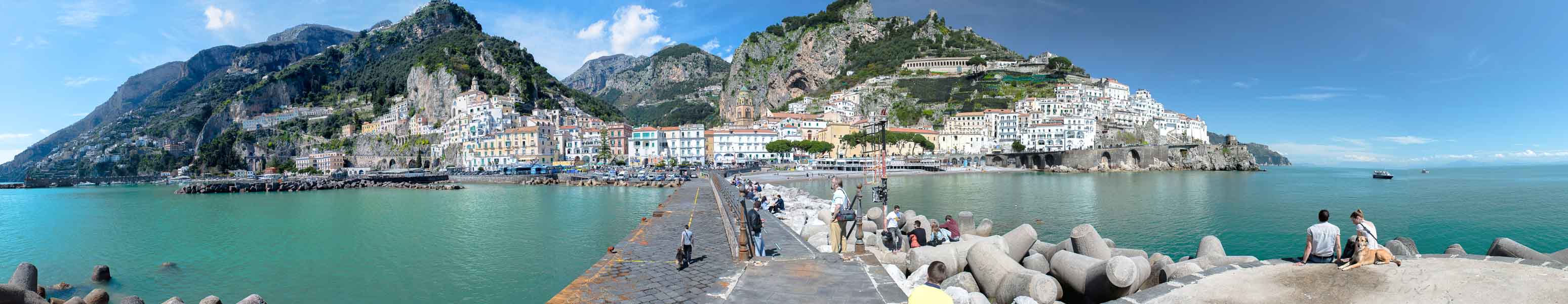 Zweites 180 Grad Panorama von Amalfi, vom zweiten Pier aus gesehen.