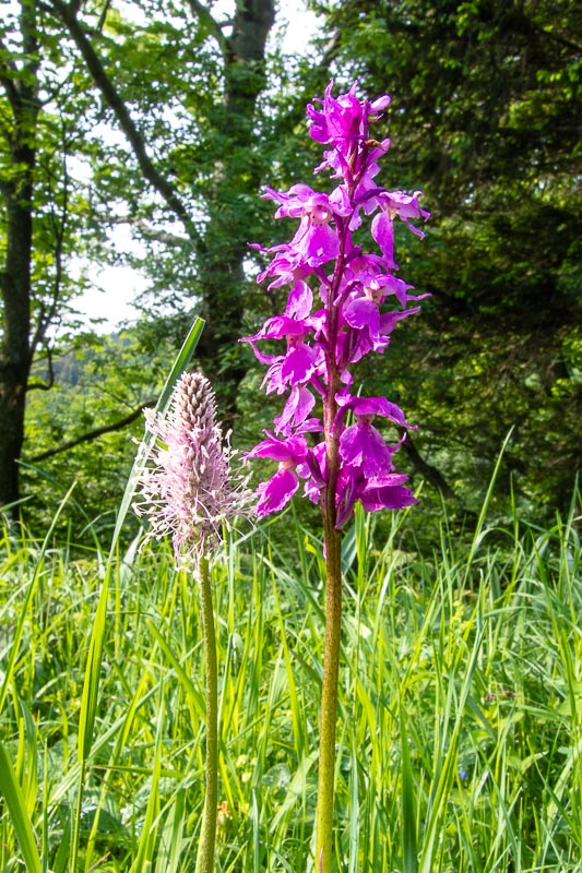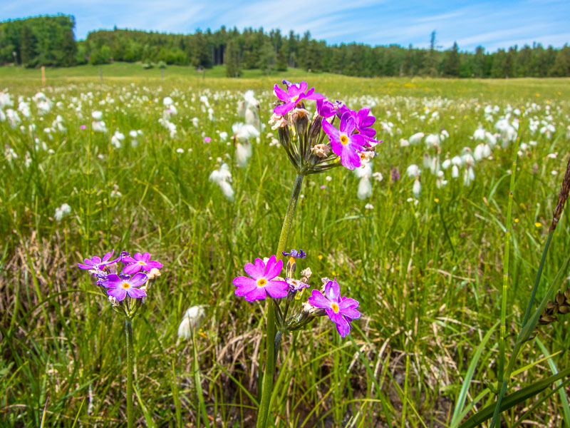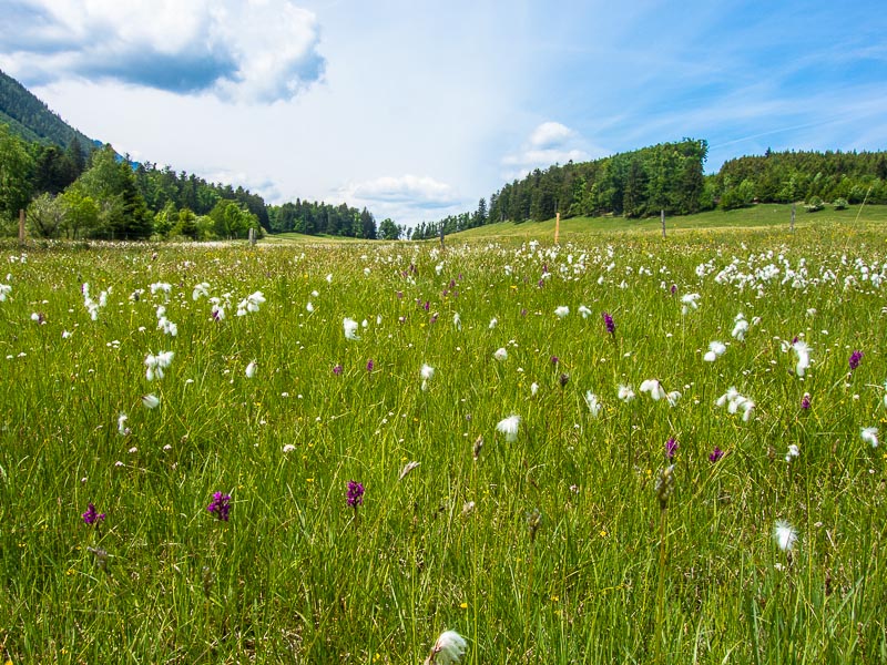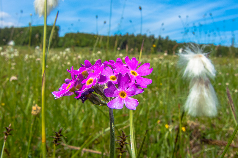 Cotton grass (Eriophorum sp.) and Western marsh orchid (Dactylorhiza majalis)