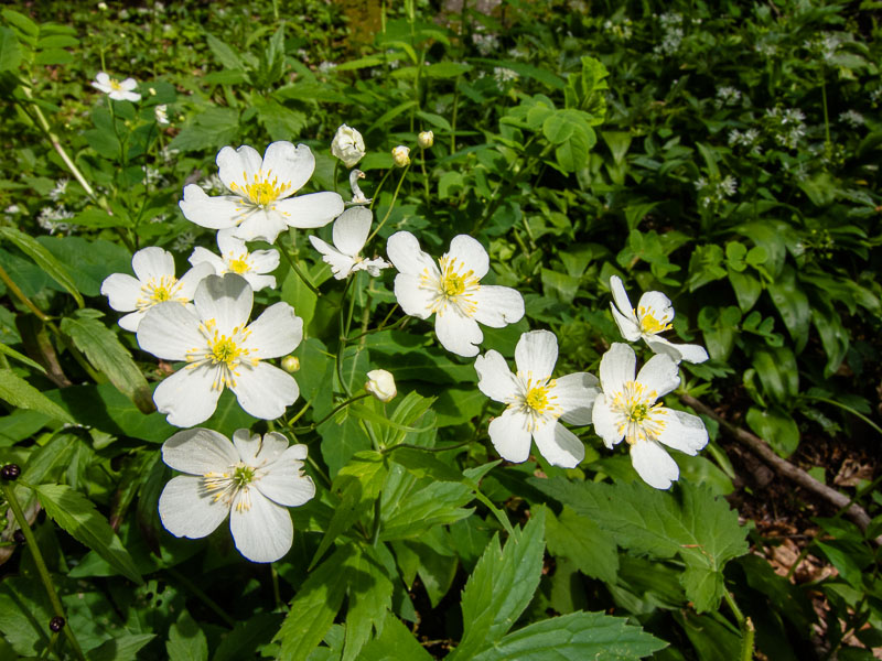 Aconite-leaf buttercup (Ranunculus aconitifolius) inside the forest ...