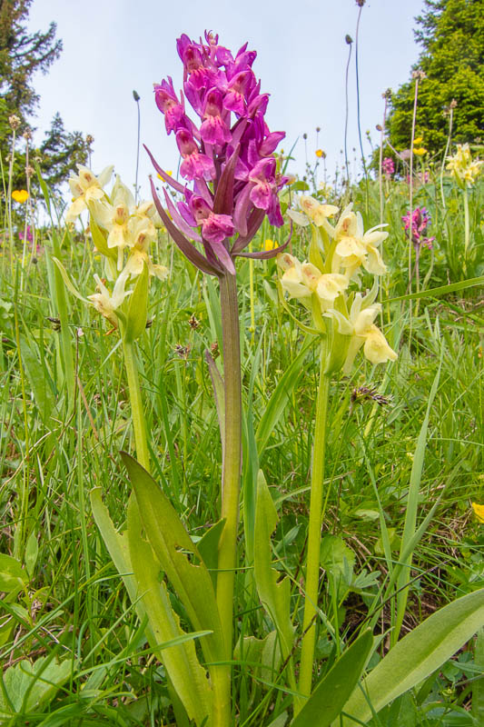 Elder flowered orchids (Dactylorhiza sambucina) - exceptionally bicolor - yellow and red.