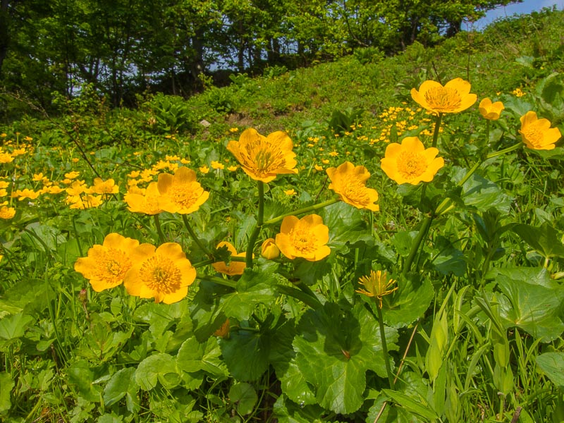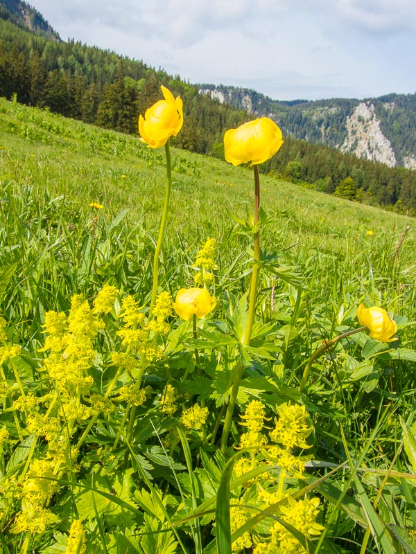 We walk a bit further in western direction to the next meadow. Globeflowers (Trollius europaeus) are growing here ...