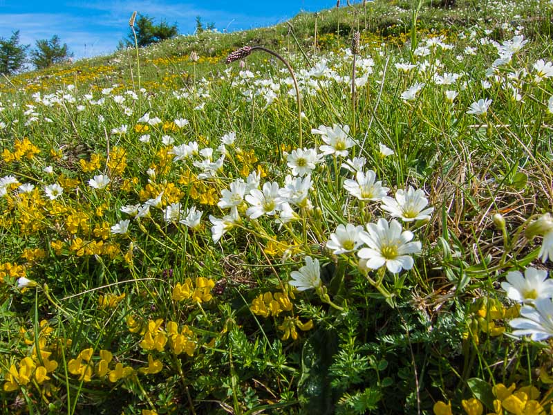 Alpine Bird´s-foot trefoil (Lotus corniculatus var. alpinus ) and Field mouse-ear (Cerastium arvense subsp. strictum)