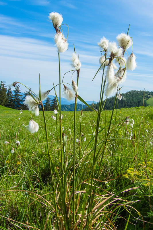 ... and, on wet places, Cotton grass (Eriophorum sp.).