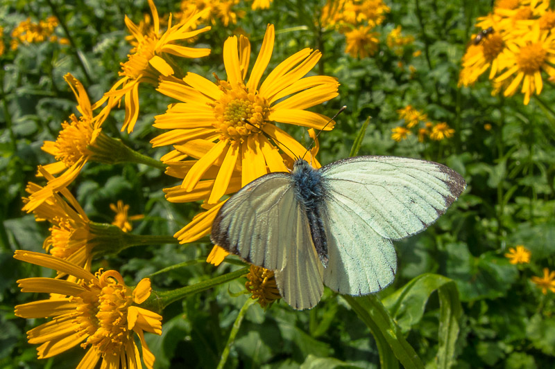 Alpine ragwort (Senecio subalpinus) with a visitor: Green-veined white (Pieris Napi)