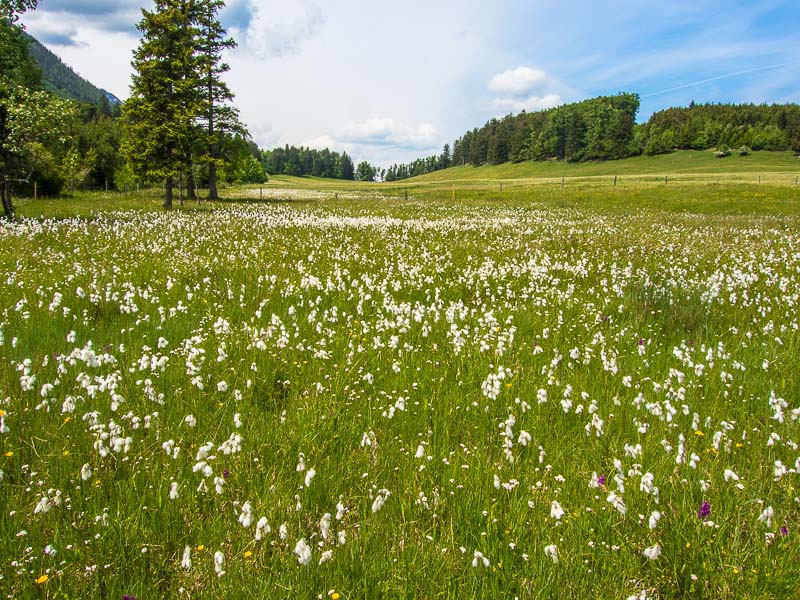 Cotton grass (Eriophorum sp.) in abundance in a wet place of the Mamauwiese.