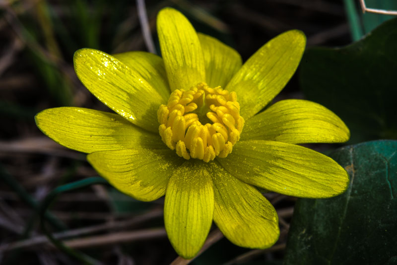Lesser Celandine (Ficaria verna) along the road.