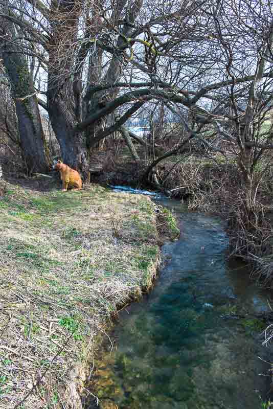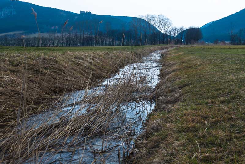 Shortly after Teichmühle, I branch off with the car into a narrow gravel road and park the car at a crossing. From there, I walk along a beck heading for Stollhof.