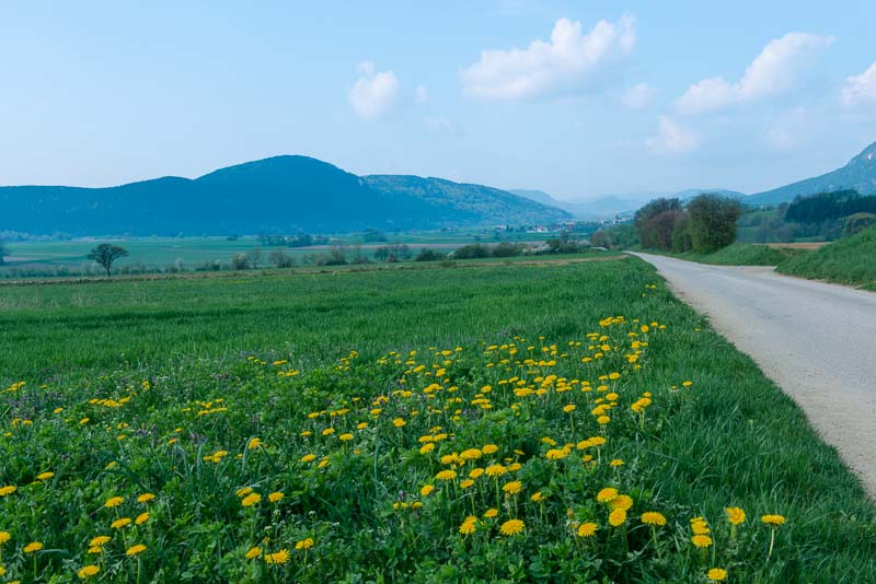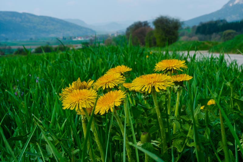 Knapp vor den untersten Häusern von Stollhof finde ich diesen bunten Löwenzahnfleck.