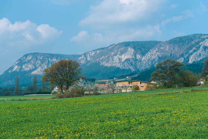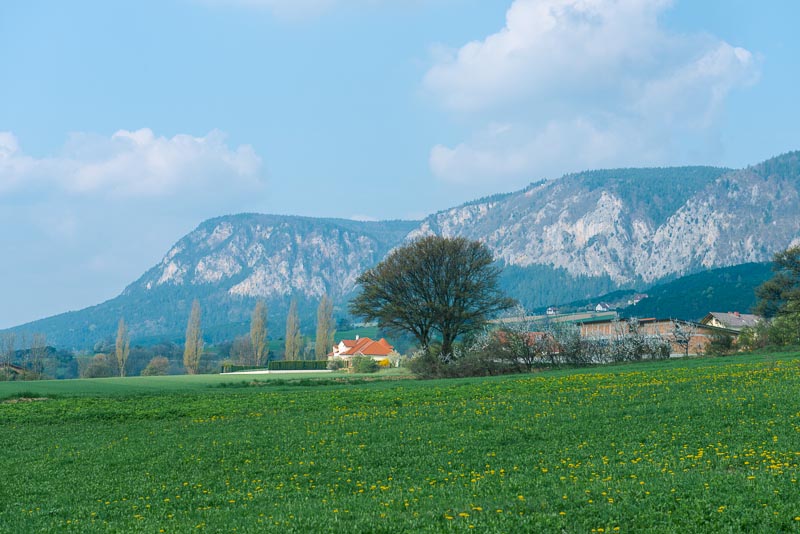 Blick zur Hohen Wand und zum Kohlröserlhaus