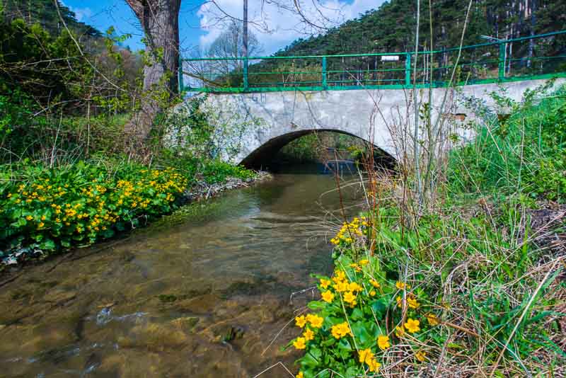 Während bei meinem Auto unweit von hier die Sommerreifen montiert werden, fahre ich mit dem Mountainbike zu diesem Bach, wo ich schon am 9. April war.