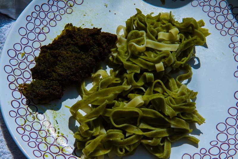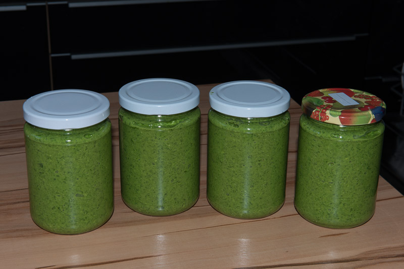 Daheim angekommen, wird der Bärlauch sogleich zu Bärlauch - Pesto verarbeitet ...
