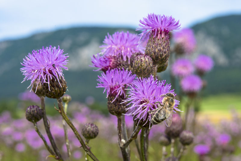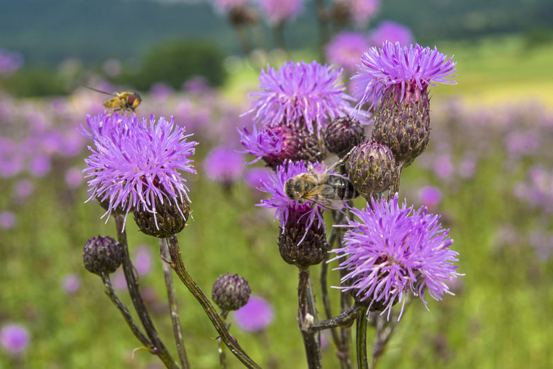 This Creeping Thistle (Cirsium arvense) has many visitors.