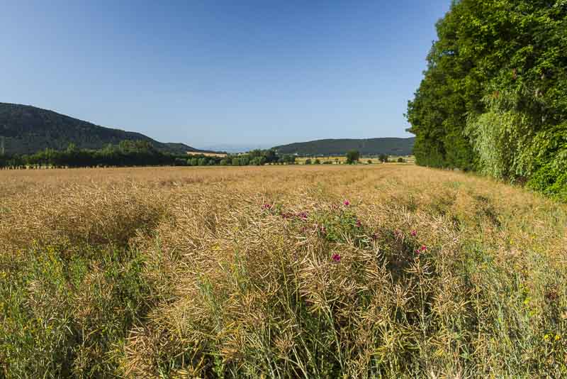 Das Rapsfeld, das ich am 8.5.2013 blühend angetroffen habe, ist jetzt zur Ernte reif.