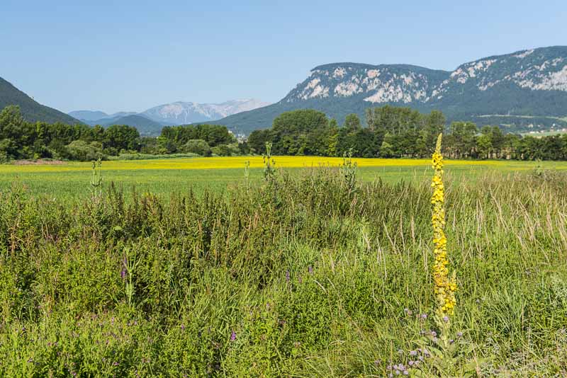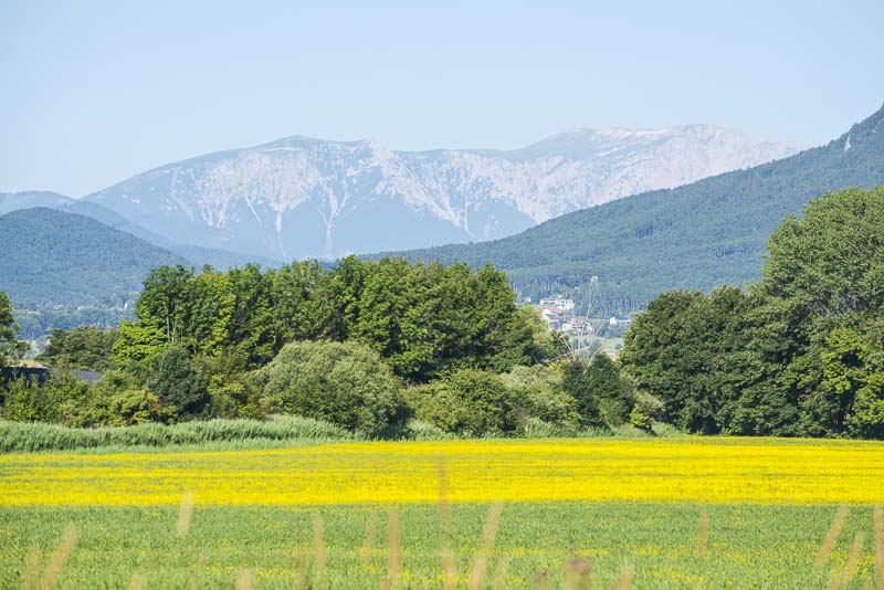 Im Hintergrund der Kienberg und die Hohe Wand.