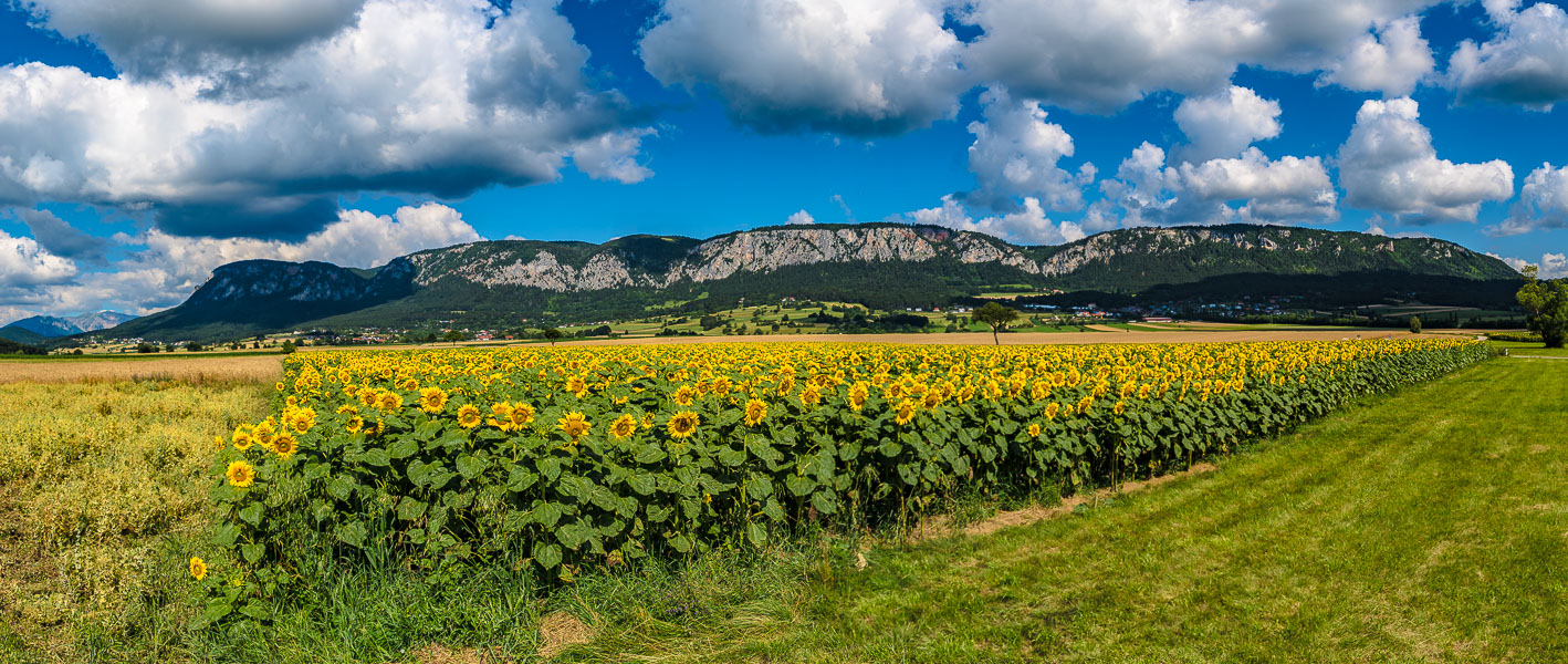 Panoramic view of Hohe Wand, with Schneeberg far left.