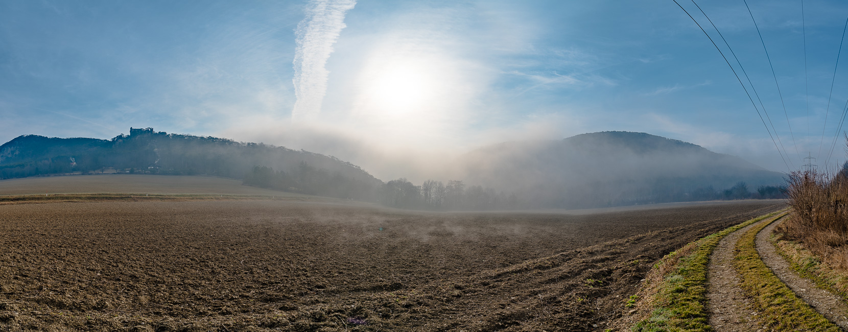 Panorama von Schlussberg, Ruine Emmerberg, Prosset Schlucht und Mitterberg.