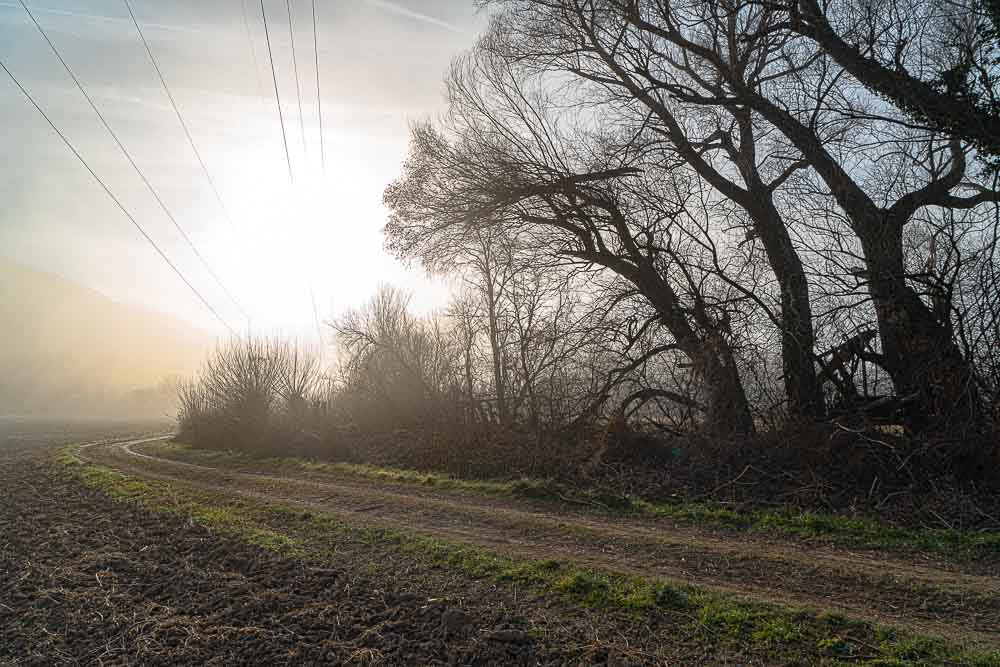 View in the direction to Netting into the mist, which cannot be very thick because the sun comes through partially.