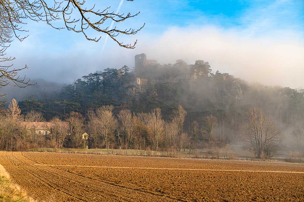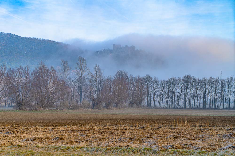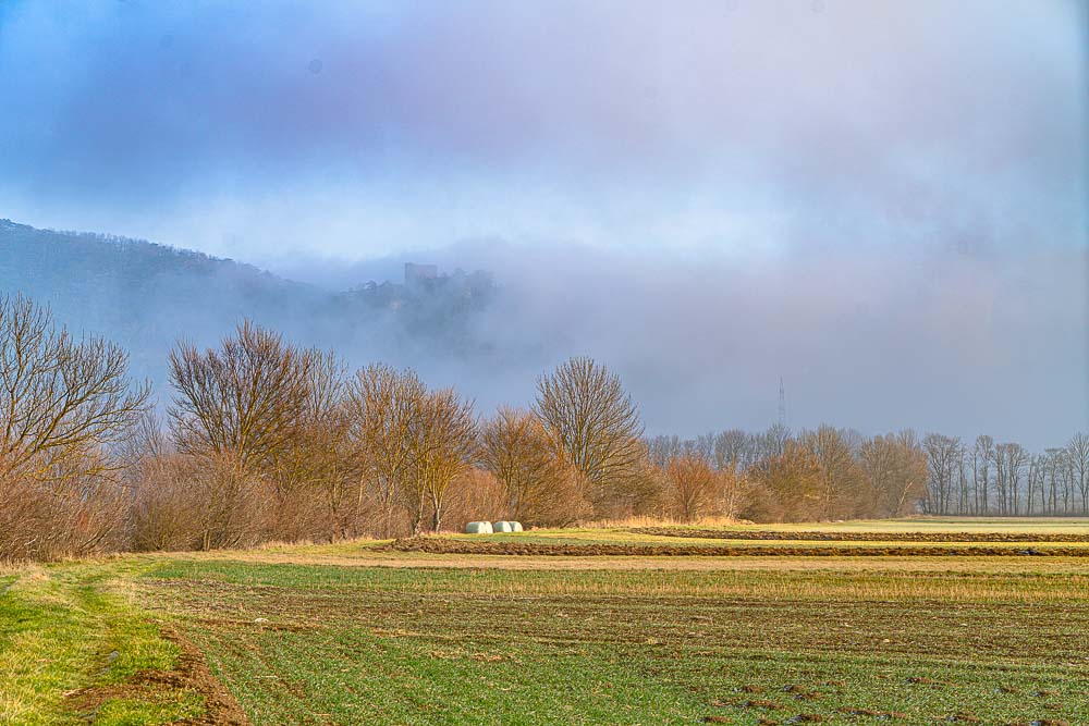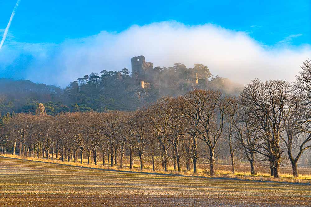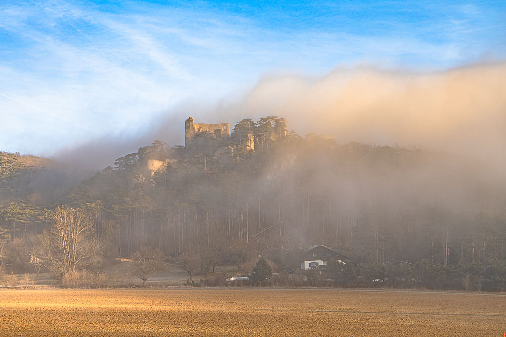 Ruin Emmerberg is just abut covered by mist.