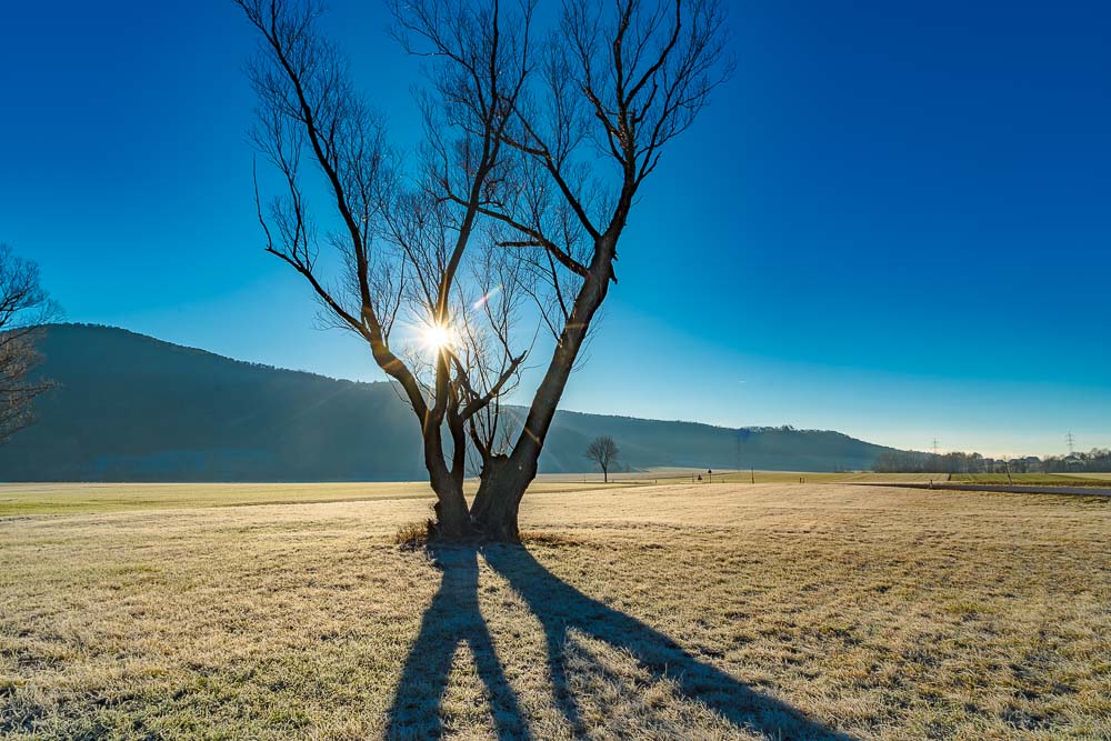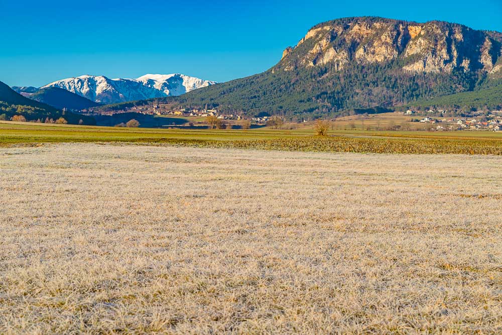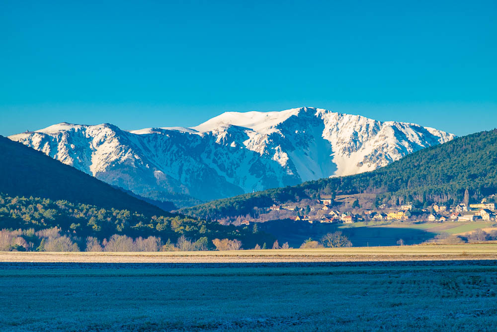 Zwischen Teichmühle und Maiersdorf liegt im Schatten - und nur dort - dicker Raureif auf den Wiesen. Reichlich Schnee am Schneeberg nach dem intensiven Regen zu Weihnachten.