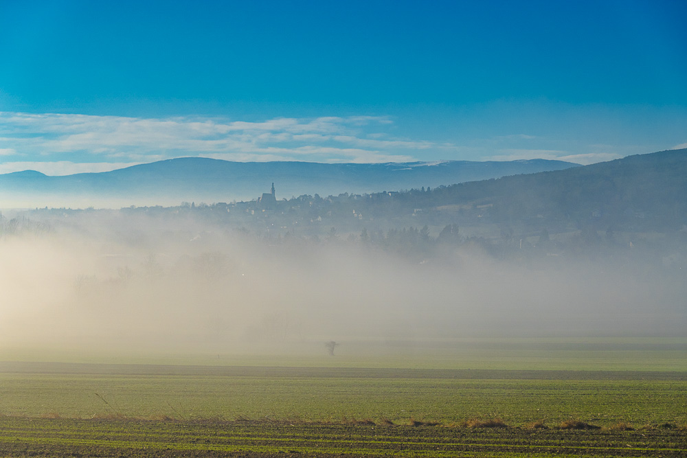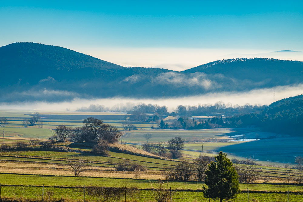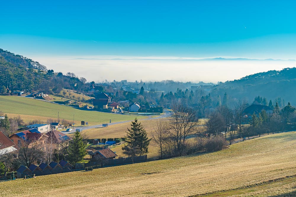 ... und Richtung Willendorf über den Nebel bis zum Rosaliengebirge.