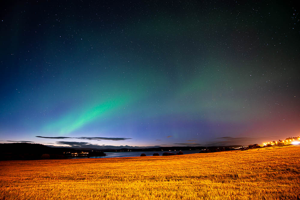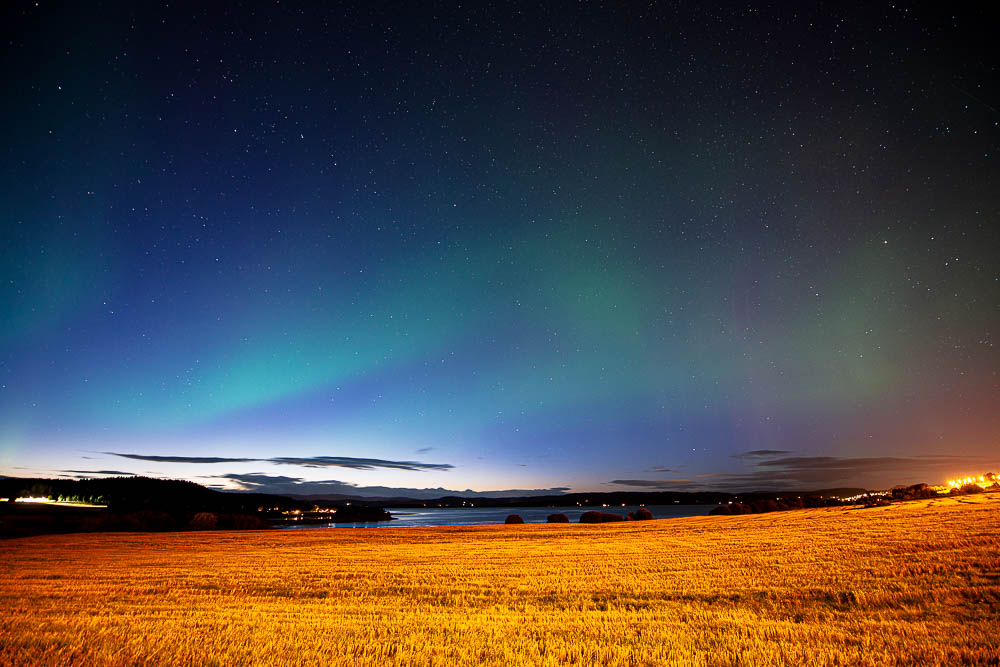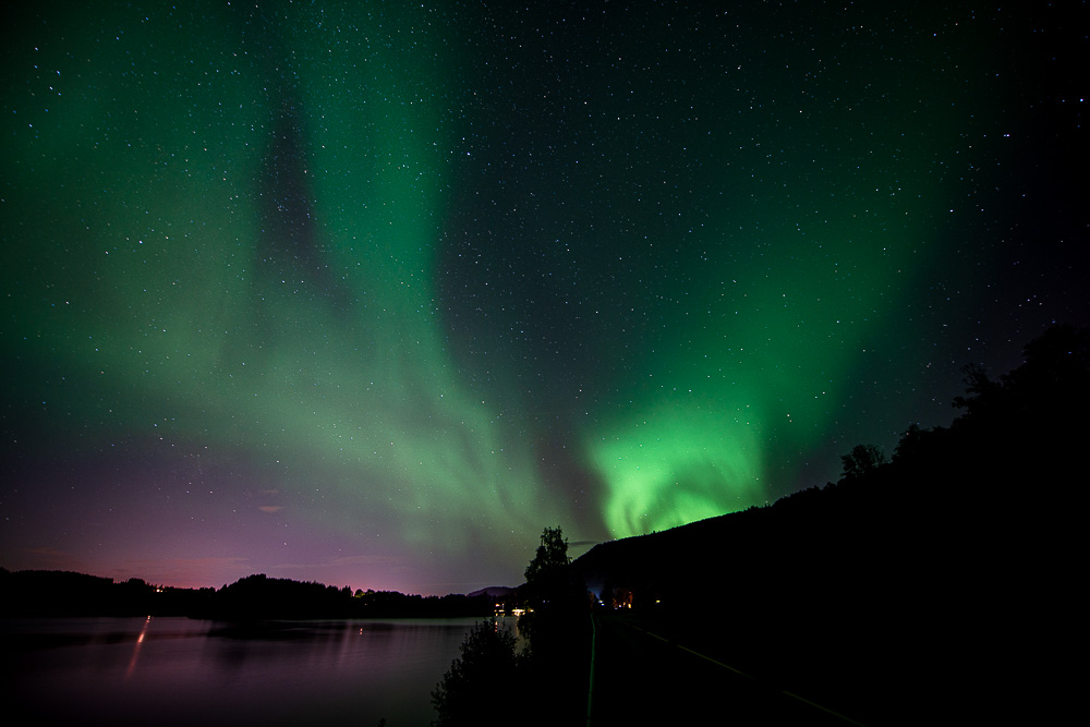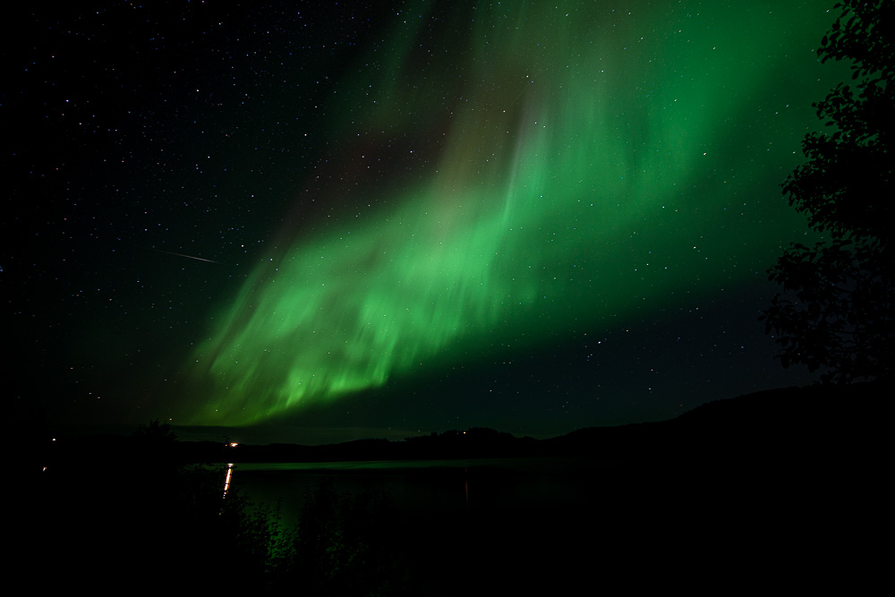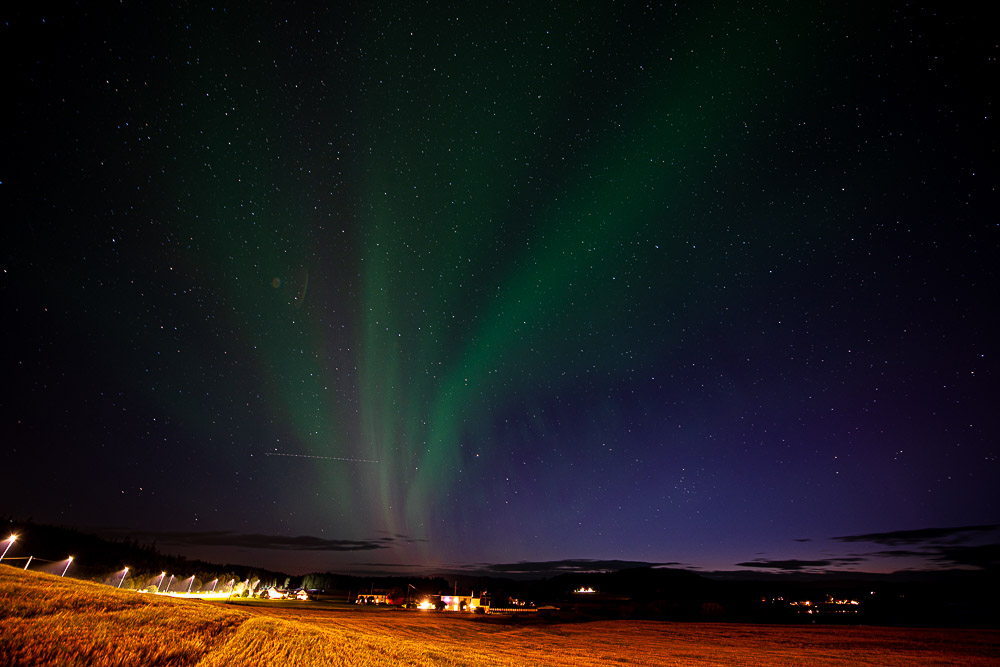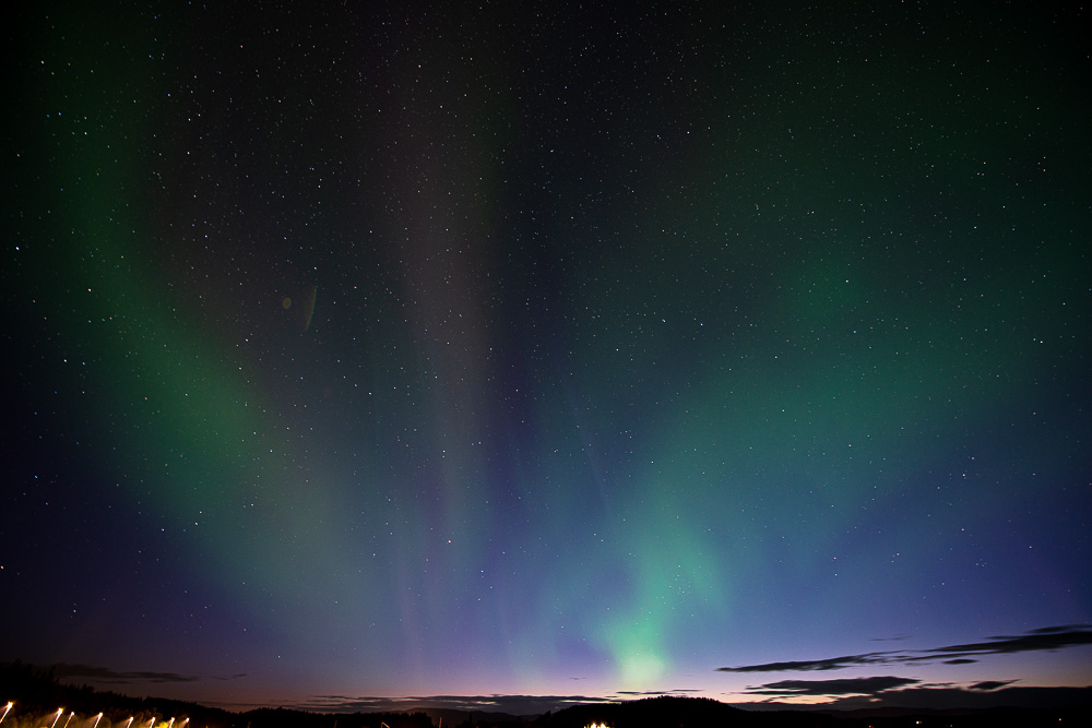 Durch das viele Licht im Vordergrund sehen wir aber die Nordlichter mit freiem Auge auch später nicht so richtig ...
