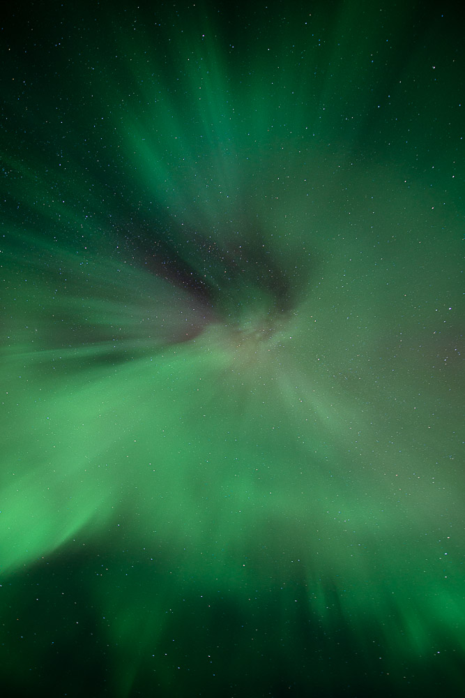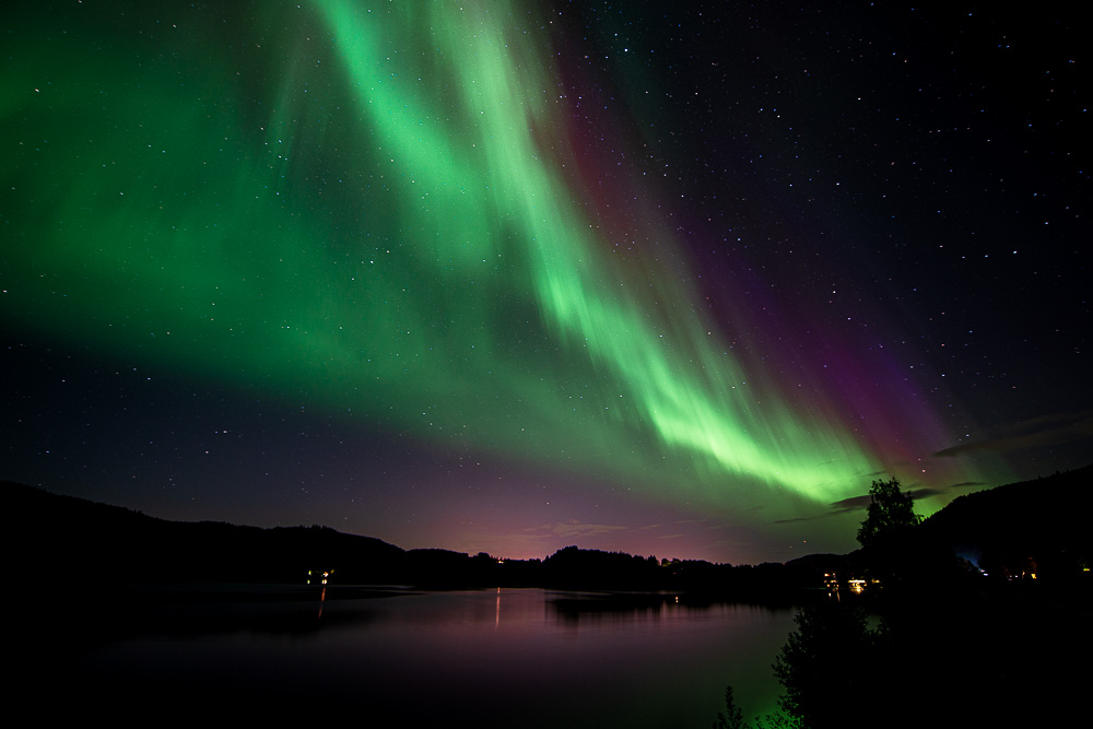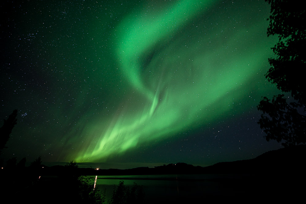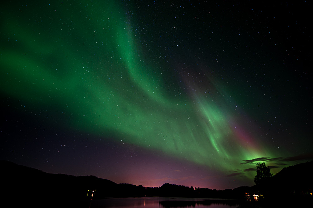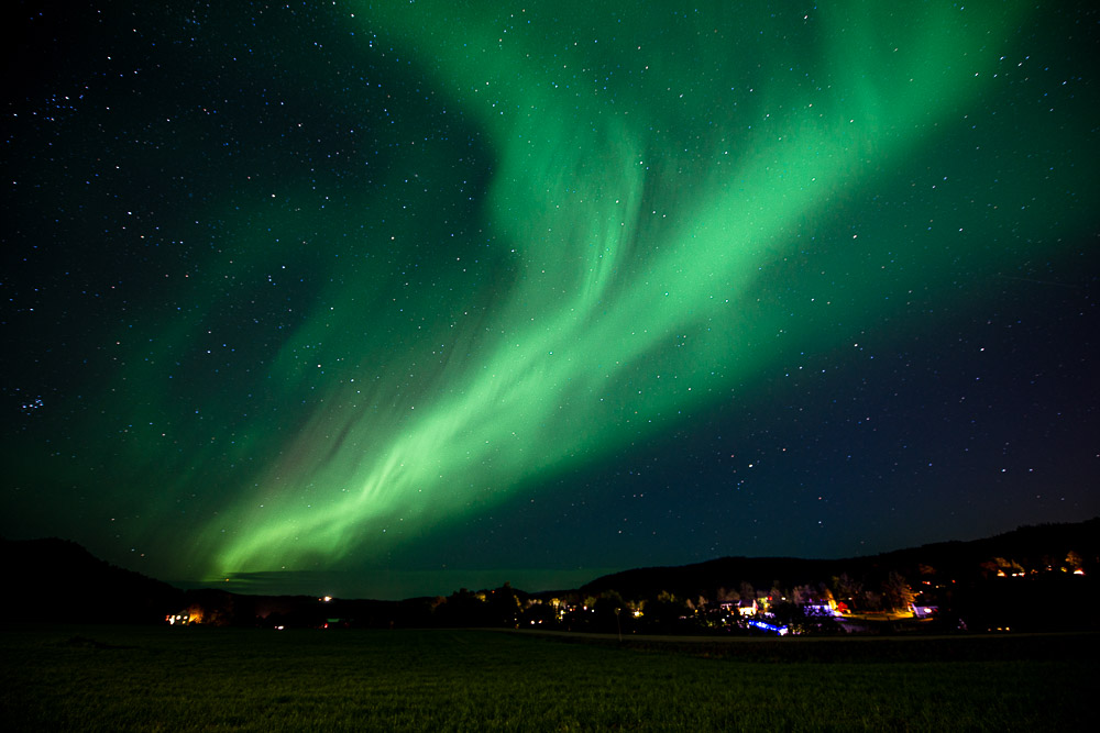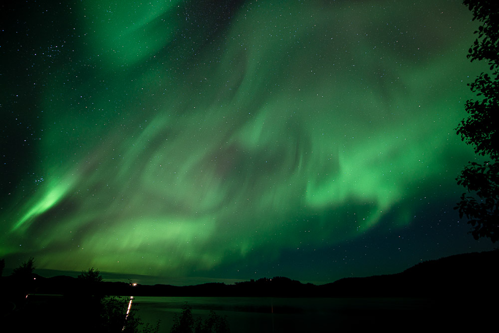 Durch das viele Licht im Vordergrund sehen wir aber die Nordlichter mit freiem Auge auch später nicht so richtig ...