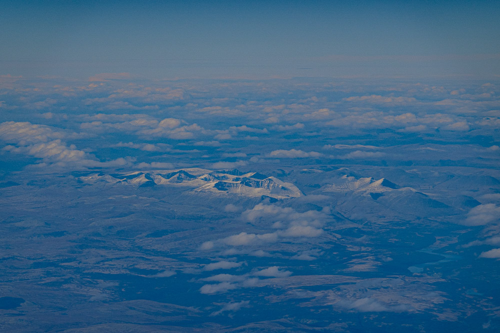 Im Westen erscheinen schneebedeckte, offenbar sehr hohe Berge - Jotunheimen?