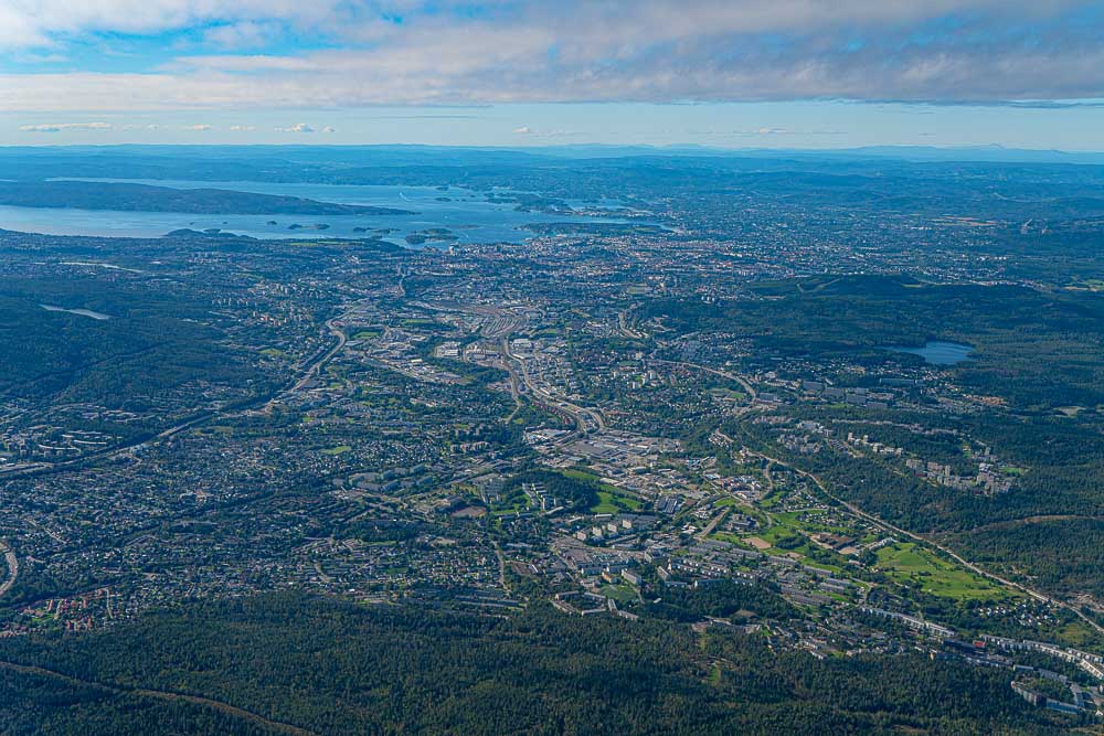 Da der Flughafen Oslo-Gardermoen nördlich der Stadt liegt, wird Oslo überflogen.