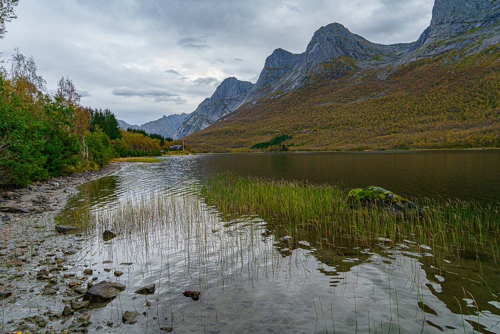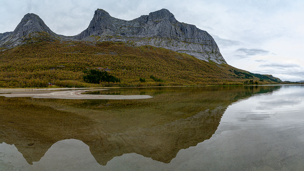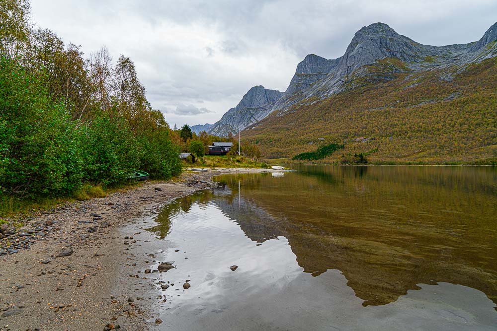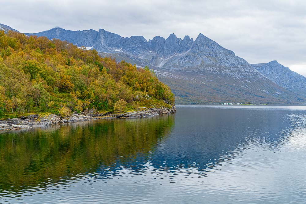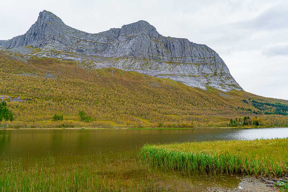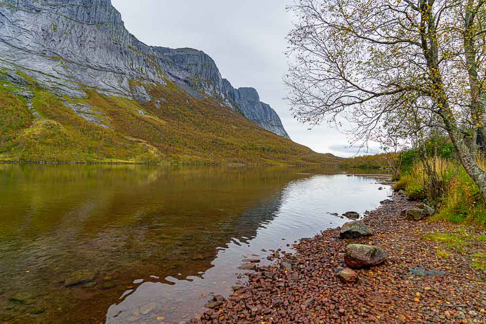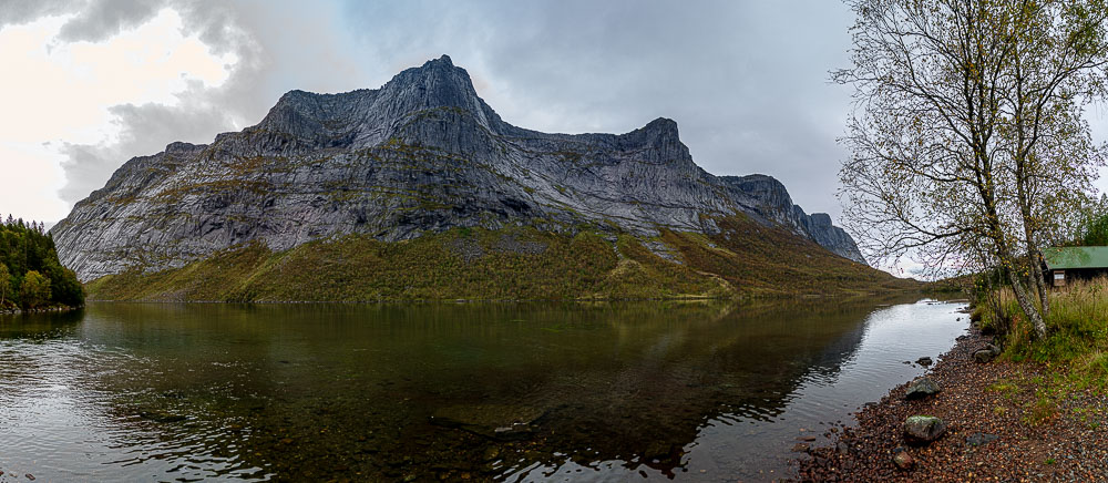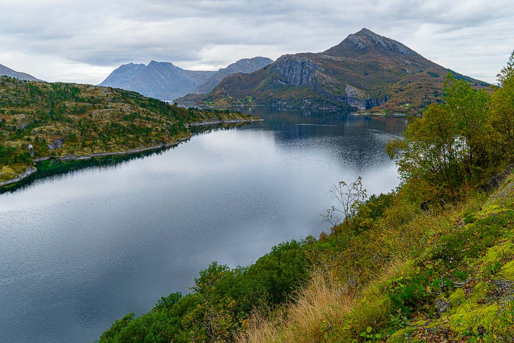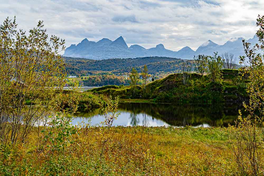 Blick nach Süden zu den Bergen des Børvasstinden und Åselitinden (beide mehr als 1.100 m hoch)
