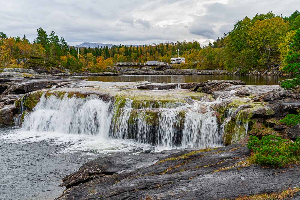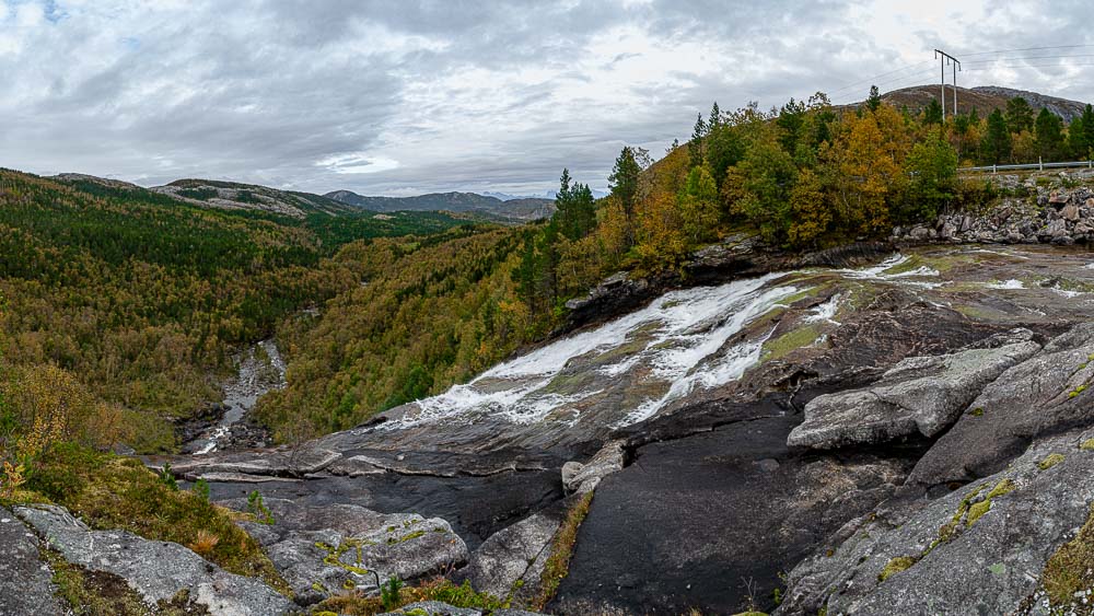 ... zum Valnesforsen, einem 80 m hohen Wasserfall, zu dem man von oben fast nicht hinsieht.