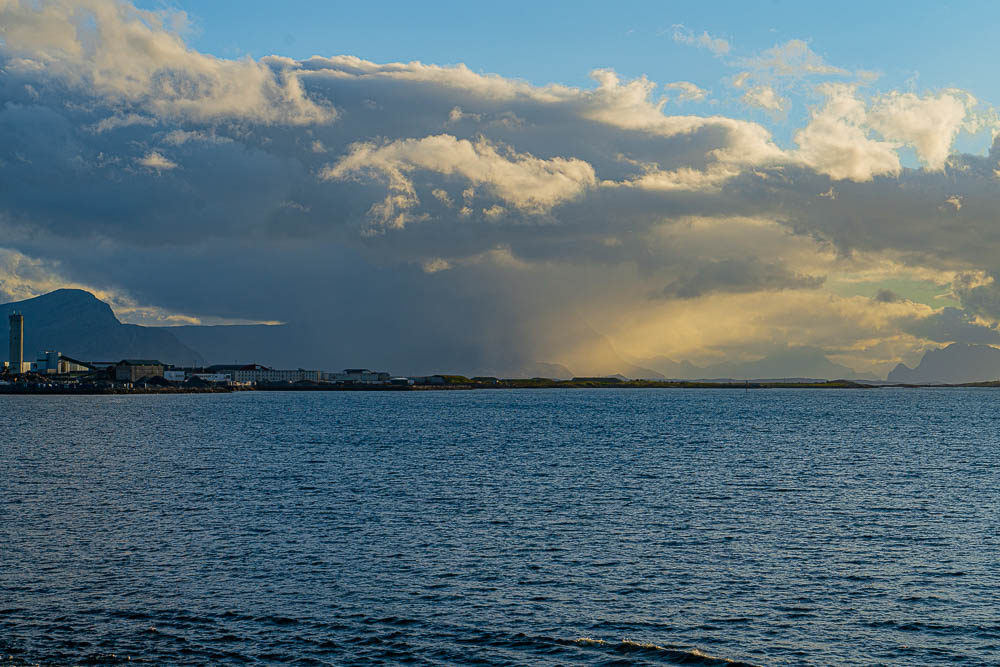 Letzte Gebäude von Bodø. Wir sind jetzt 3 1/4 Stunden zu den Lofoten unterwegs, wo es bei unserer Ankunft natürlich längst dunkel ist.