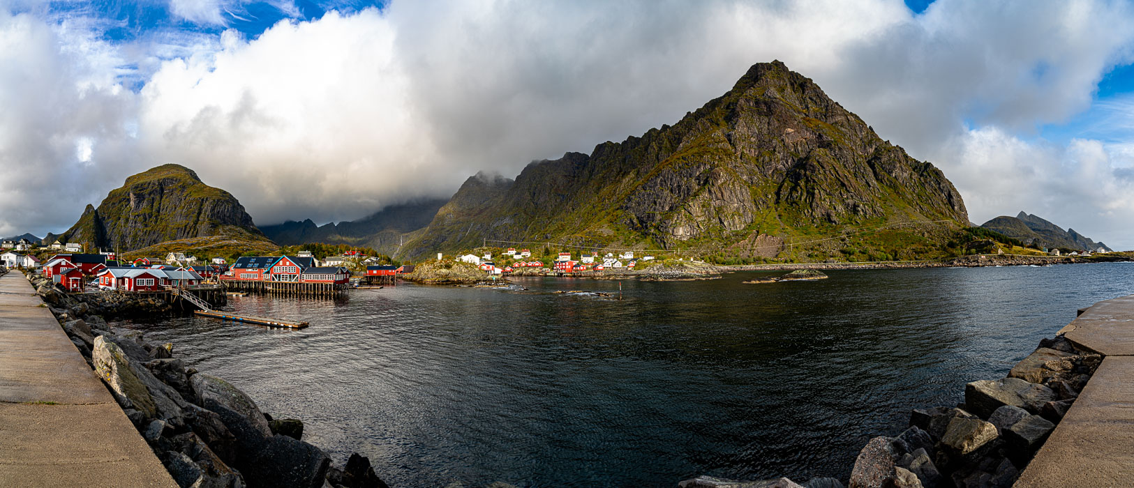 Panorama von Å mit dem Andstabben links und dem Tindstinden (490 m) rechts.