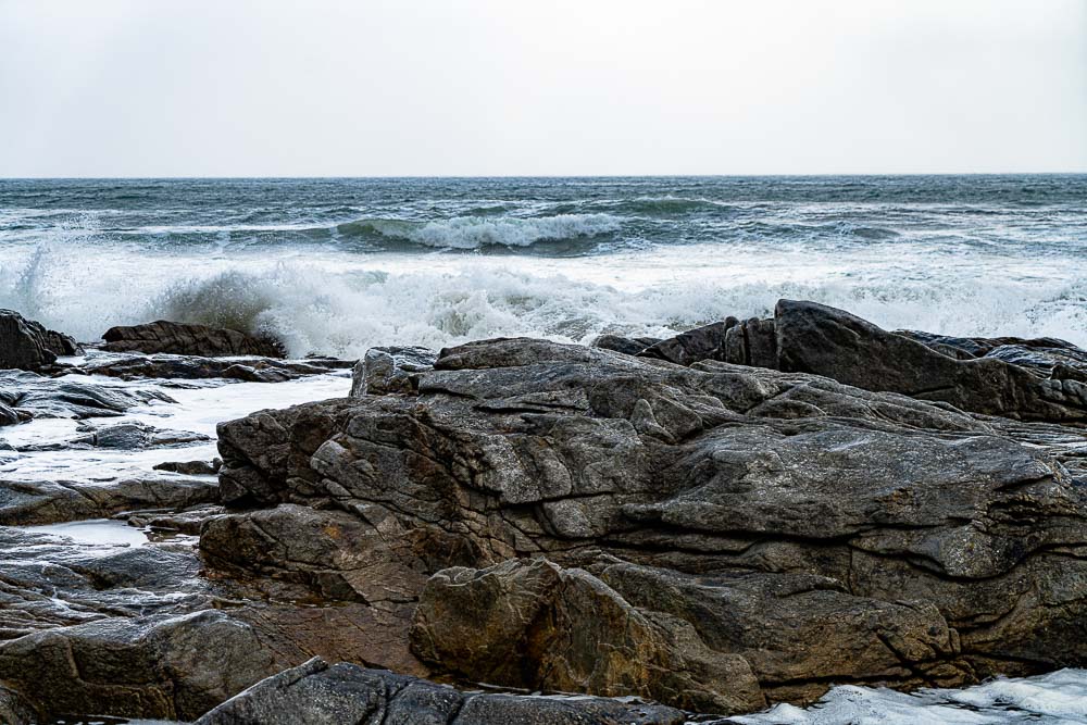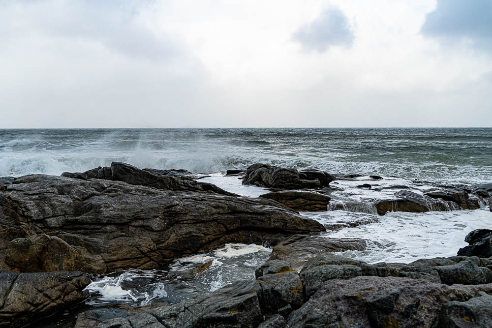 Das Meer ist bei heftigem Wind heute sehr stürmisch. Am Sandstrand gibt das ein gutes Peeling für die Haut.
