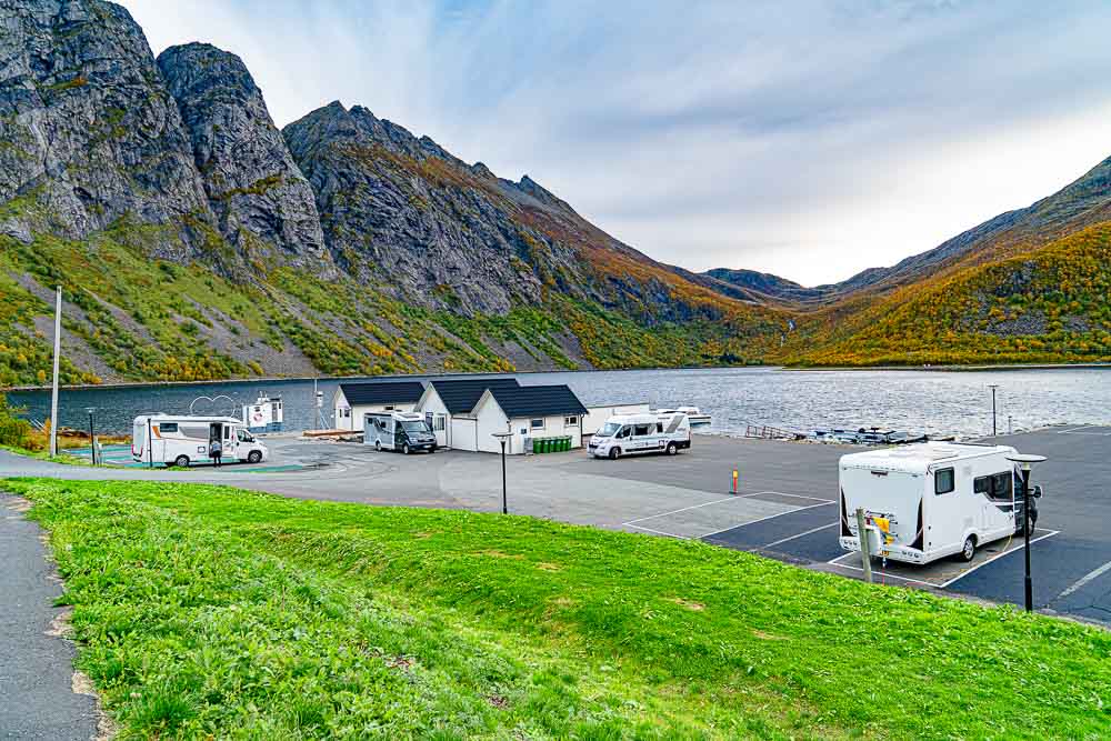 Mefjordvær. Zu sehen auch der Parkplatz, auf 36 m Seehöhe.