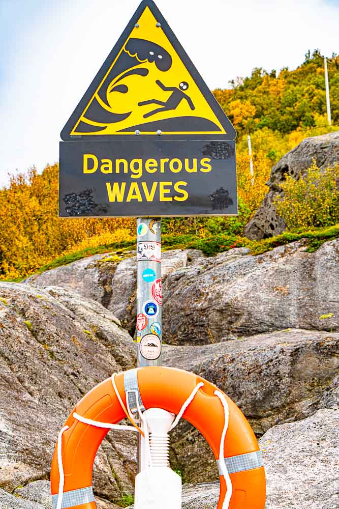 Die Felsen sind aber teilweise noch von Wasser überschwemmt - die Warnung wurde wohl zu Recht aufgestellt.