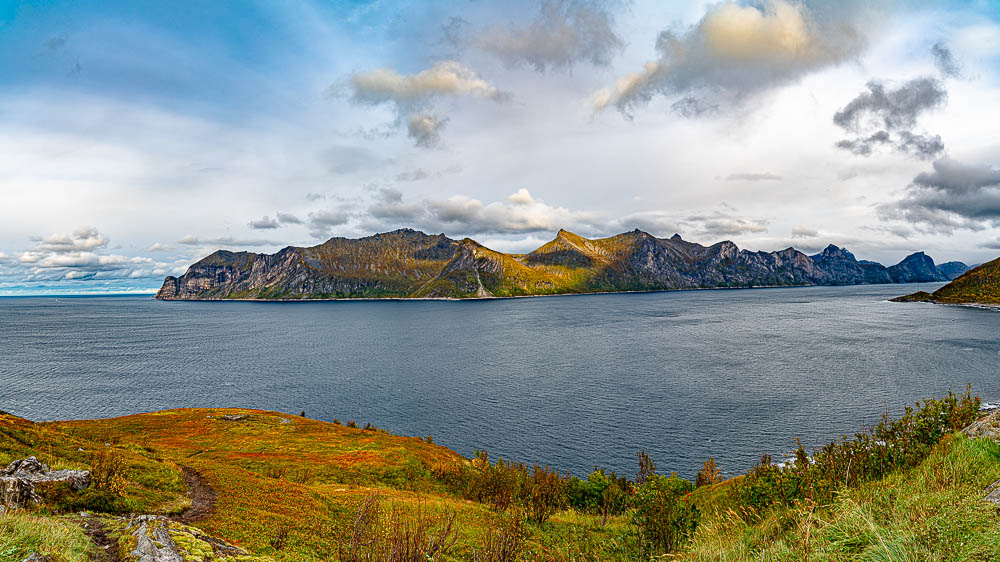 Fahrt entlang der Fjorde an der Nordwestküste der Insel Senja.