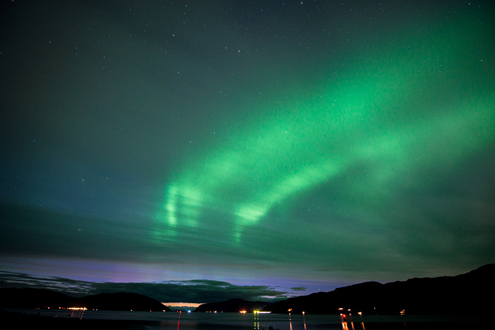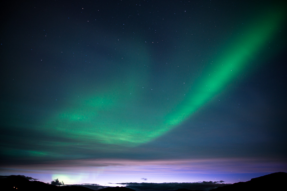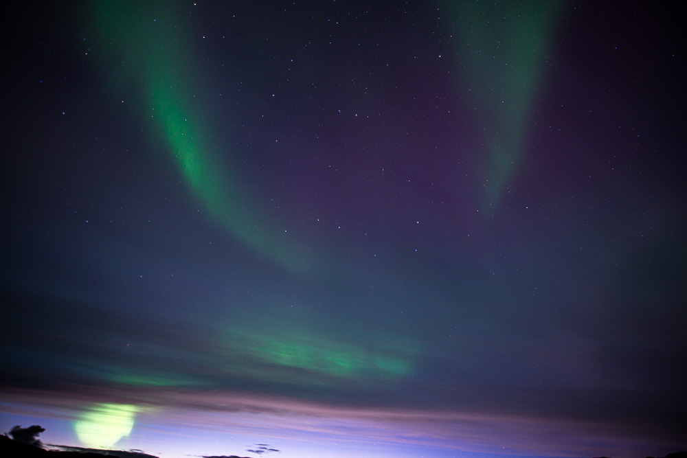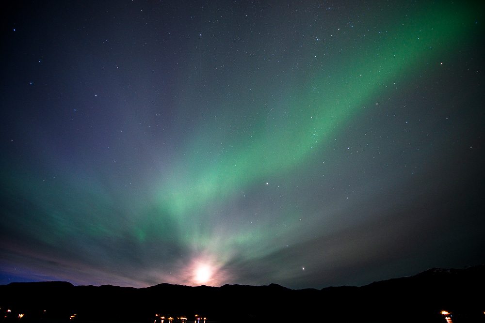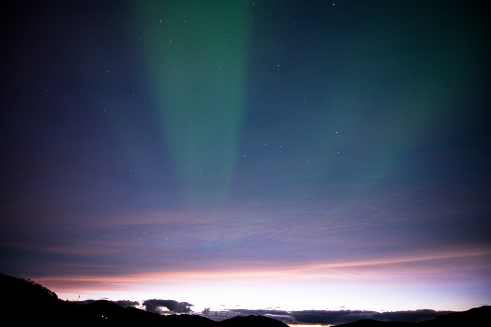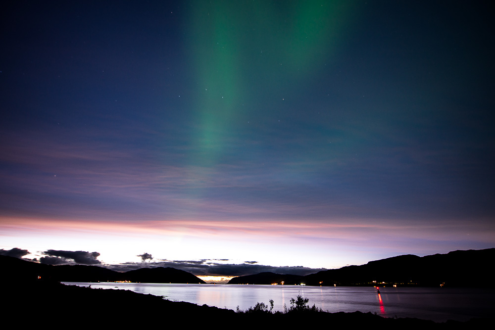 Schon in der Abenddämmerung zeigen sich erste Nordlichter.