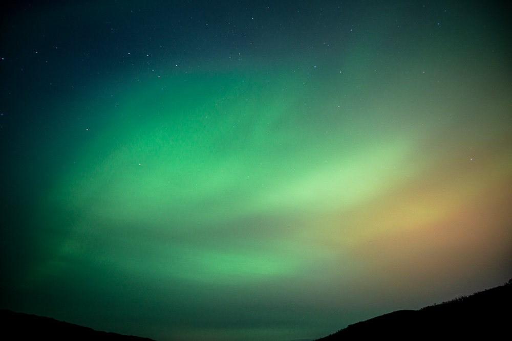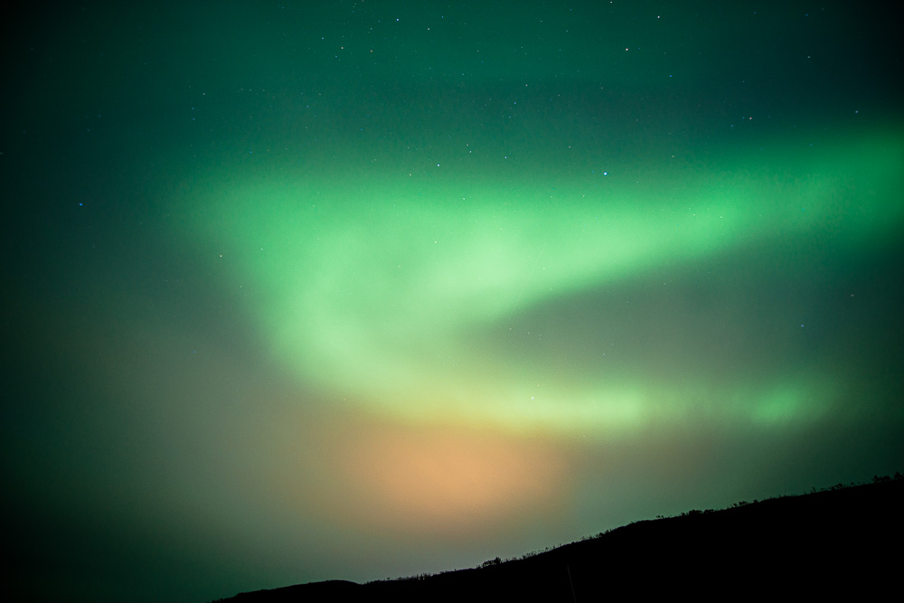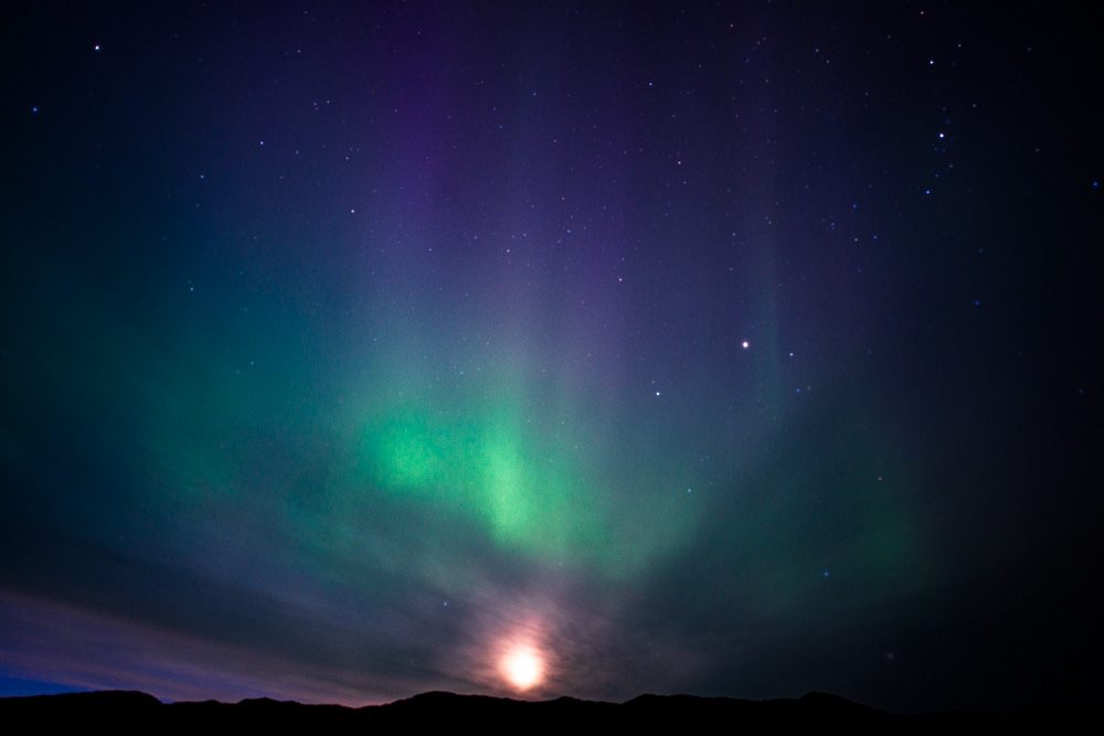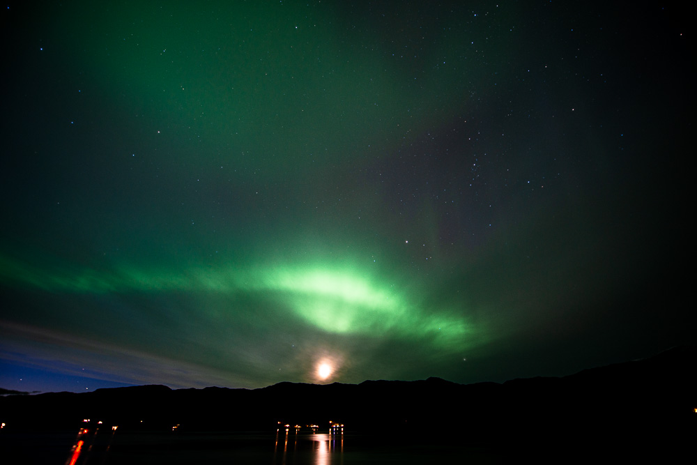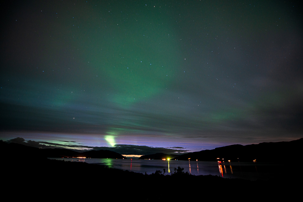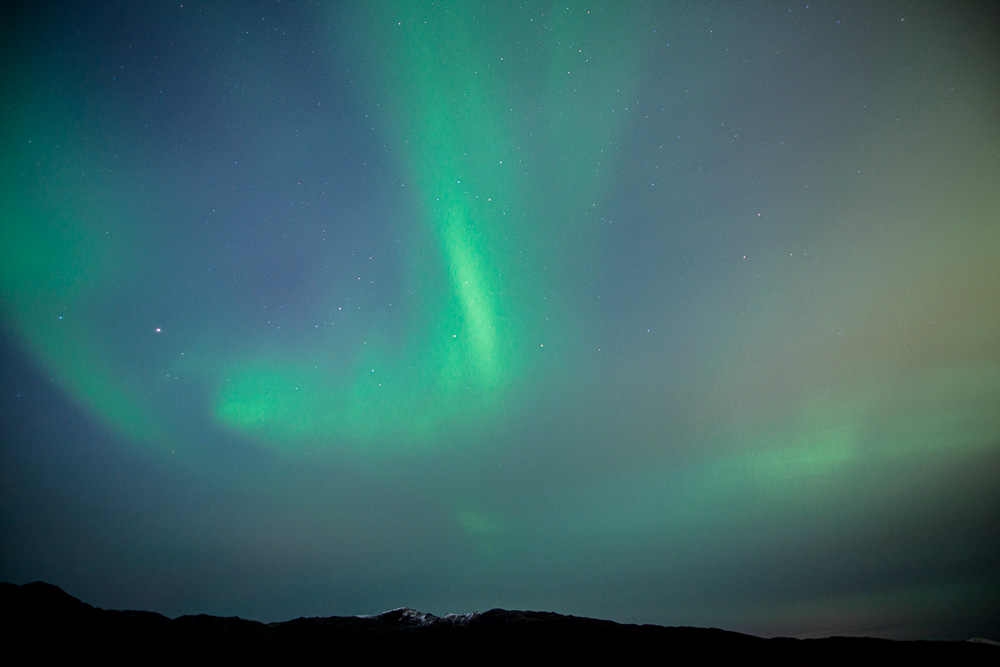 Schon in der Abenddämmerung zeigen sich erste Nordlichter.