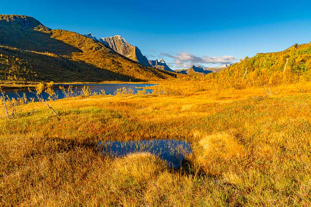 Unterwegs wieder faszinierende Herbstfarben auf der Insel Senja zwischen Medfjordbotn und Galnslåttta.